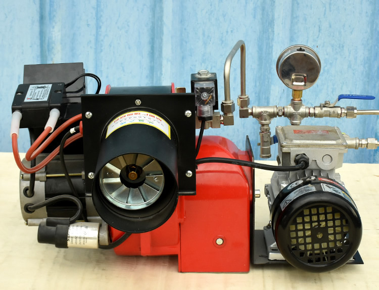 燃燒器所有部件集為一體,結(jié)構(gòu)緊湊。配有滑動(dòng)式安裝法蘭,套裝在燃燒頭后的燃燒筒上,只需將法蘭固定到爐子上。按通電源,即可投入運(yùn)行。