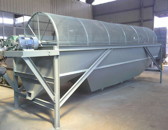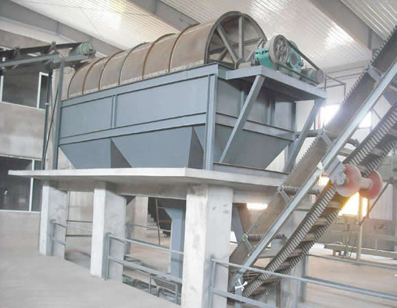 分級(jí)除雜滾筒篩: 滾筒篩整個(gè)設(shè)備有儲(chǔ)料倉、滾筒篩分機(jī)和皮帶輸送機(jī)組成。物料由裝載機(jī)裝入儲(chǔ)料倉,然后進(jìn)入滾筒篩,旋轉(zhuǎn)的篩筒帶動(dòng)物料在篩筒內(nèi)翻滾,從一端向另一端移動(dòng),小于設(shè)定(網(wǎng)眼)的物料由篩網(wǎng)漏出進(jìn)入皮帶機(jī),然后由皮帶輸送機(jī)匯集從另一端卸出,大于網(wǎng)眼的廢料部分從篩網(wǎng)另一端排出,整個(gè)過程連續(xù),物料分級(jí)準(zhǔn)確,滾筒篩由電機(jī)、減速機(jī)、驅(qū)動(dòng)聯(lián)軸器、軸承支座和篩籠等組成。