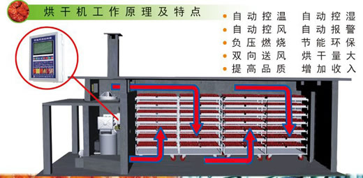 節(jié)能型燃煤烘干房按國(guó)際標(biāo)準(zhǔn)制作,烘干房采用了PLC大屏幕顯示屏,可顯示整個(gè)烘烤過(guò)程的工藝曲線。熱源以煤或柴為燃料,房體由防火聚氨酯保溫板成,內(nèi)部骨架全部采用插接式鍍鋅結(jié)構(gòu),安裝方便,堅(jiān)固耐用。整個(gè)設(shè)備經(jīng)久耐用,穩(wěn)定性好。設(shè)計(jì)科學(xué)、自動(dòng)化程度高,盡量滿足每個(gè)客戶烘烤的特性,烘烤曲線可以自行編制或?qū)貪穸瓤刂圃O(shè)備內(nèi)已儲(chǔ)存的烘烤曲線進(jìn)行修改,以達(dá)到所有客戶的烘烤工藝要求。