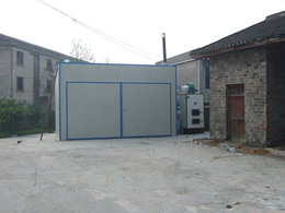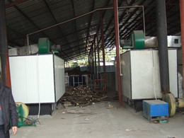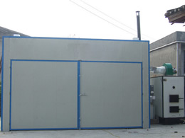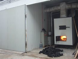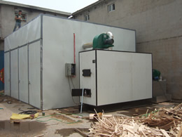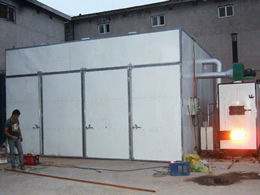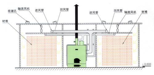 采用功能獨特的熱源發生裝置,保證有足夠的熱源供給干燥窯,干燥初期由于有大量熱源進入室內,加大室內濕度防止物料烘壞。