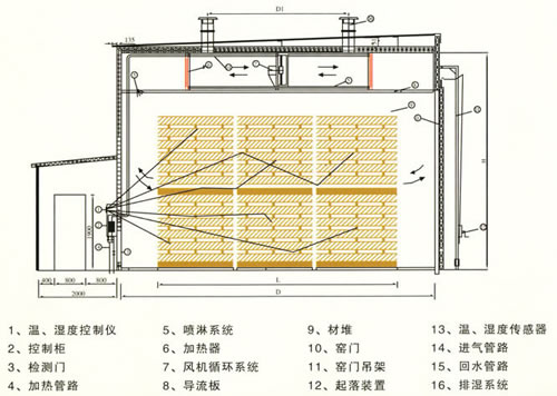蒸汽式木材干燥窯,木材烘干窯,木材烘干房配置:鋁合金結(jié)構(gòu)窯體、窯門(提門裝置)、加熱系統(tǒng)、調(diào)濕系統(tǒng)、氣流循環(huán)系統(tǒng)、進(jìn)排氣系統(tǒng)、檢測(cè)系統(tǒng)及控制系統(tǒng)等部分組成。
