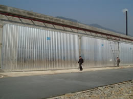 全鋁合金體木材干燥窯窯體采用鋁合金型材做骨架,外板為鋁合金瓦楞板,內(nèi)板為鋁合金壓型板,中間可根據(jù)用戶需要采用18-40容重玻璃絲棉保溫。型材與型材、型材與鋁板、鋁板與鋁板間的連接采用不銹鋼螺栓、鋁合金焊條、不銹鋼焊條焊接。窯體堅(jiān)固耐用,保溫良好。