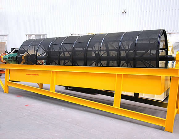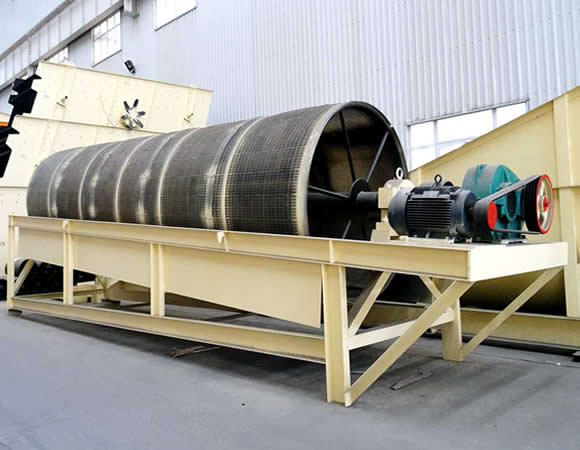 電機驅動滾筒軸線作旋轉運動,減速機調節(jié)筒體以一定的轉速旋轉,物料由進料口進入筒體內,在旋轉產生的離心力作用下,物料在筒內翻滾,自上而下通過分級篩網析出,由于篩網分級尺寸不同,物料逐漸被分離篩選,粒度合格的物料經篩分后落入到各自的漏斗,然后由人力方式運出或通過輸送機自流送往成品站。合格產品經過下端出料口排出,顆粒較大,分選不合格的產品經另一排料口排出,筒內清理裝置,使篩網不宜被阻塞。