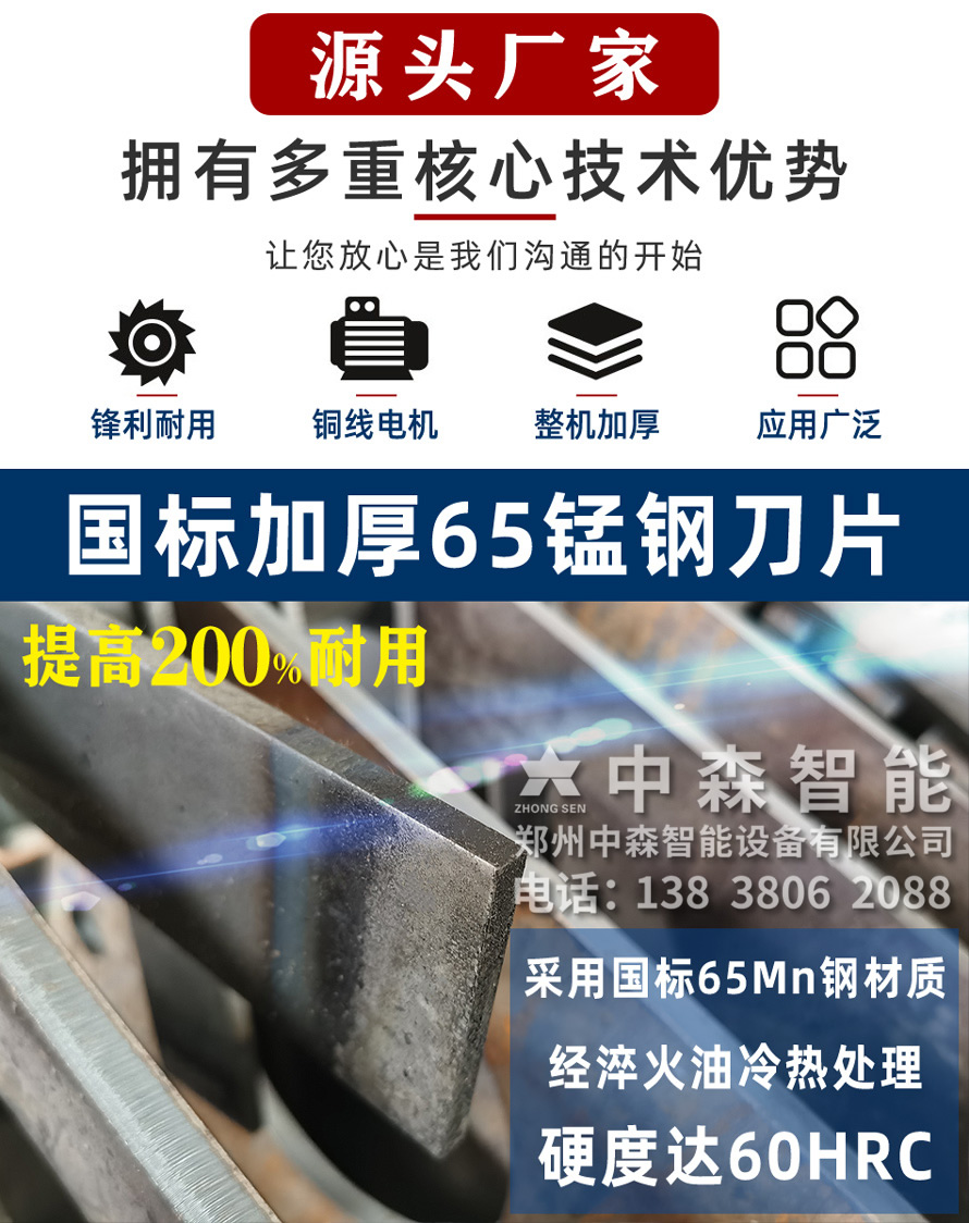 【產品介紹】中森智能專注于木材粉碎機20余年,從研發(fā)設計生產到銷售,現(xiàn)已形成一體化制造商以及售后服務商;木材粉碎機是加工生物質顆粒,造紙,木炭,多種板材,食用菌,生物發(fā)電,園林,木屑,有機肥等農,林,工業(yè)生產配套設備.可粉碎多種雜木,木材,木頭,模板,邊角料,樹枝,竹子,園林綠化,食用菌等物料。