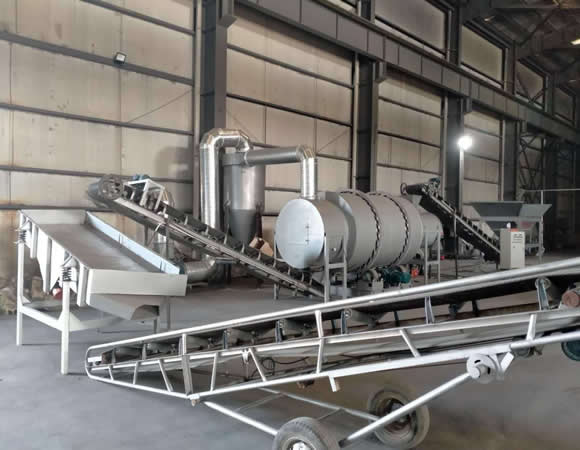 石英砂烘干機物料經過圓盤給料機給料到皮帶機上,由輸送機運輸到經過熱風爐的流沙管,通過流沙管進入到烘干機筒內,在內筒固定攪拌葉輪和向前旋葉片的作用下沙子很快向前推進,在此過程中與進入筒體內的熱氣流進行接觸。