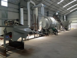 在筒體內的石英砂會被內部安裝的擋板,統(tǒng)稱揚料板揚起,由于揚料板設計的形式多樣,石英砂會在不同的高度被揚起,形成錯落的石英砂流,高溫氣流就從其中穿過,增加了與石英砂的接觸時間和接觸面,使內部的水分干燥更快,如此反復循環(huán)幾個回合之后,石英砂與水分徹底分離,水分受熱在筒體的頂部被風機抽出,干燥的石英砂則從下料口出料。被抽出的高濕氣體種會含有一些石英砂粉末顆粒,排放到環(huán)境種會用污染,一般需要經過旋風除塵器過濾下即可。