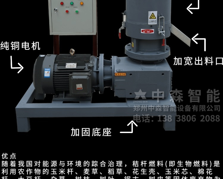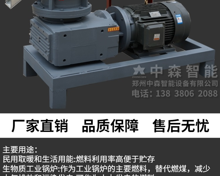 【產(chǎn)品介紹】中森智能專注于生物顆粒機(jī)械設(shè)備廠家20余年,從研發(fā)設(shè)計(jì)生產(chǎn)到銷售,現(xiàn)已形成一體化制造商以及售后服務(wù)商;顆粒機(jī)適用于各種木材,農(nóng)作物,鋸末木屑,秸稈,稻草,玉米芯,牛羊糞,食用菌,甘蔗渣等物料加工生物質(zhì)顆粒。用于燒鍋爐,取暖,養(yǎng)殖,生物電廠,服裝廠,造紙廠,電子等行業(yè)。