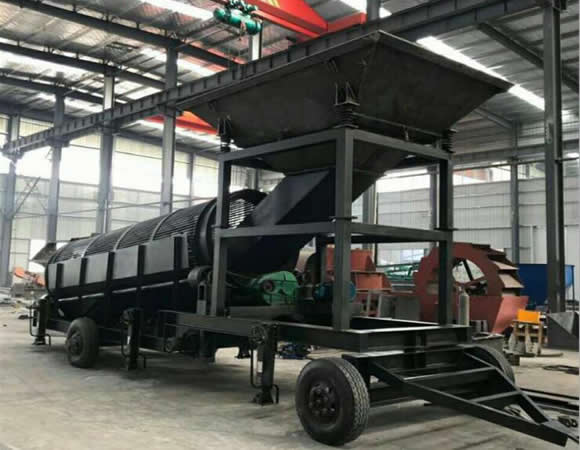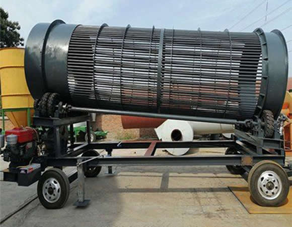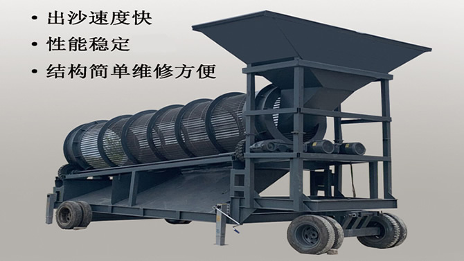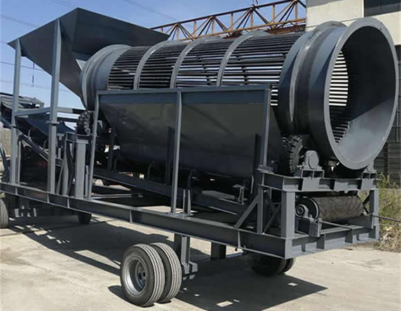 移動式砂石滾筒篩主要有電機(jī)、減速機(jī)、滾筒裝置、機(jī)架、密封蓋、進(jìn)出料口組成。整體與地平面成傾斜狀態(tài),外部被密封隔離罩所密封,以防止污染環(huán)境。通過變速減速系統(tǒng)使篩分筒在一定轉(zhuǎn)速下旋轉(zhuǎn),物料自上而下通過篩分筒得到分離,細(xì)料從篩分筒前端下部排出,粗料從篩分筒下端尾部排出。