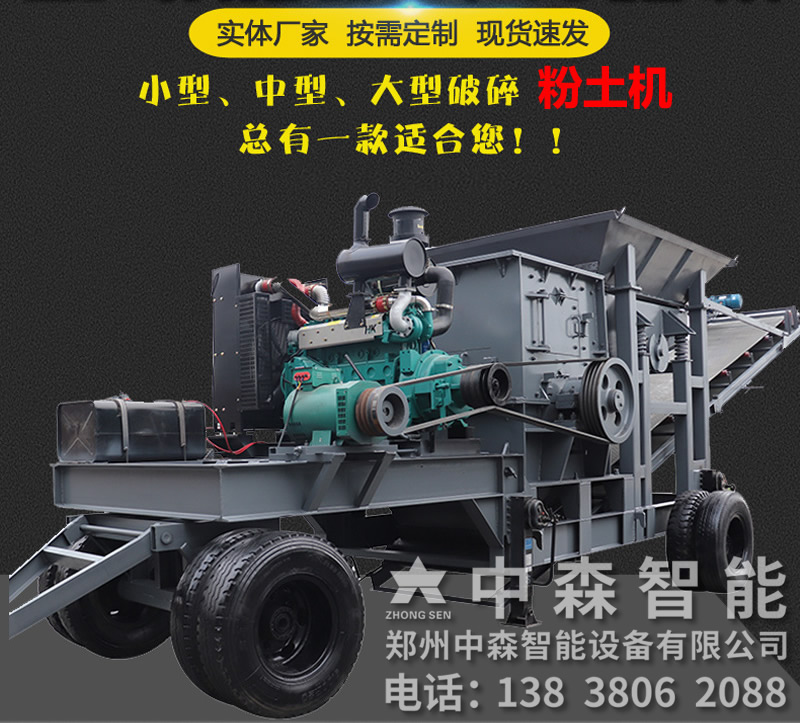 碎土機該機采用錘式破碎機原理特制又能破碎又可以切碎,又能打碎黏土,遇到硬質物體又能排出,本機設計破碎,輸送為一體有輪胎可以行走,不需要底座搞安裝,移動方便,電器設手動和遙控操作簡便安全。